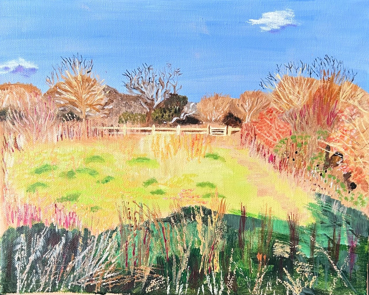 A painting of Horton Park in Epsom done in Acrylics by Pam Wollinger, a volunteer at the Old Moat Garden Centre – love your work, Pam!